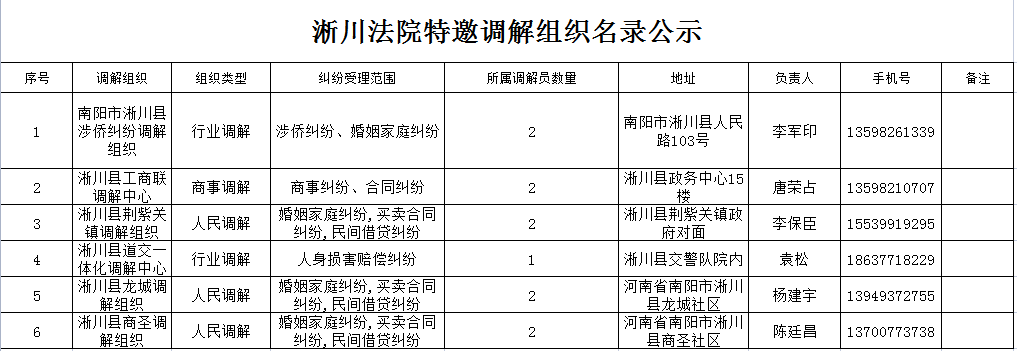 淅川法院特邀调解队伍名录公示